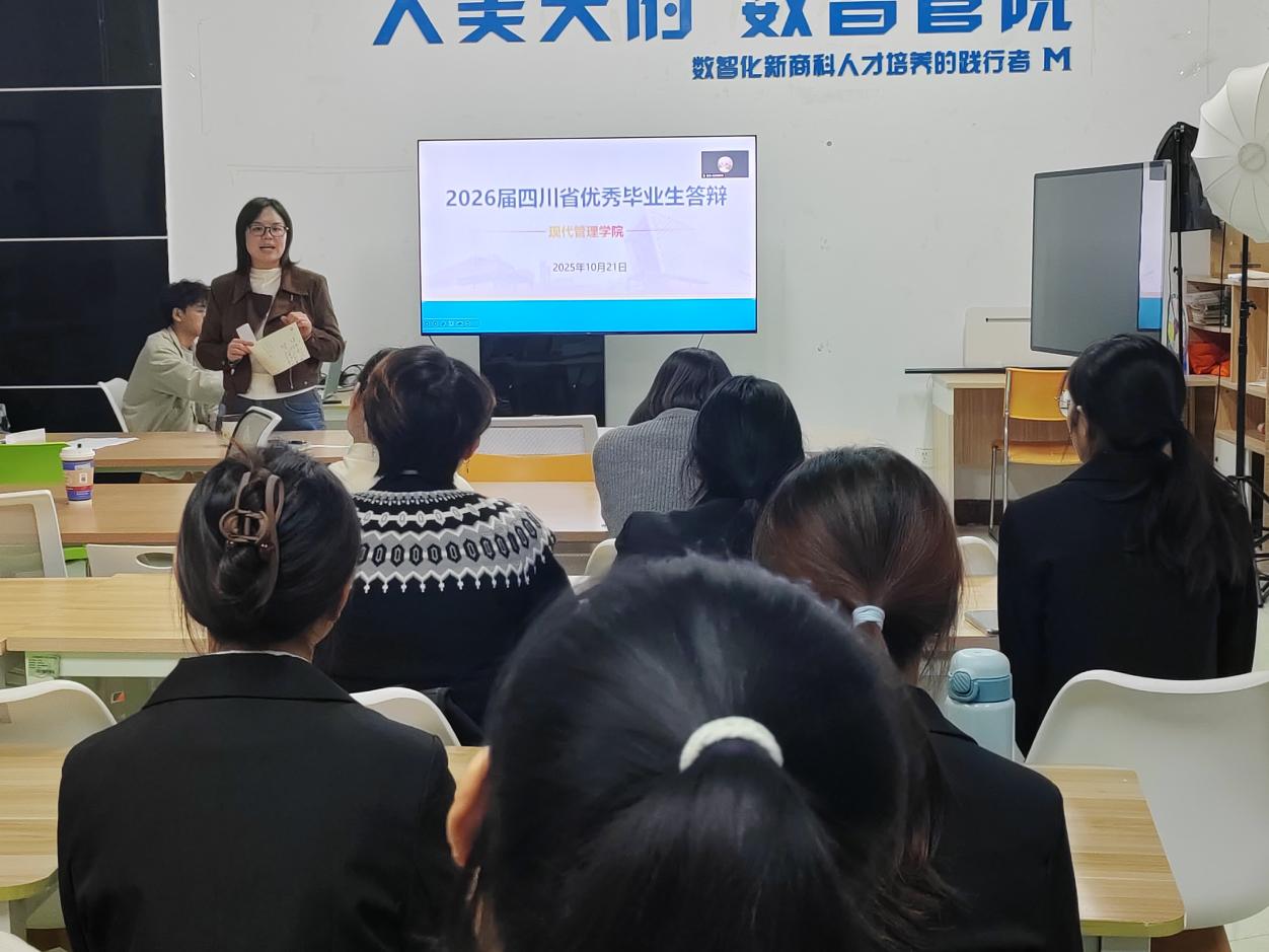 为全面推进学院“立德树人”根本任务,充分展现当代大学生勤学笃实、奋发向上的青春风采。现代管理学院于10月21日,在绵阳校区B6-1开展2026届四川省优秀毕业生答辩...