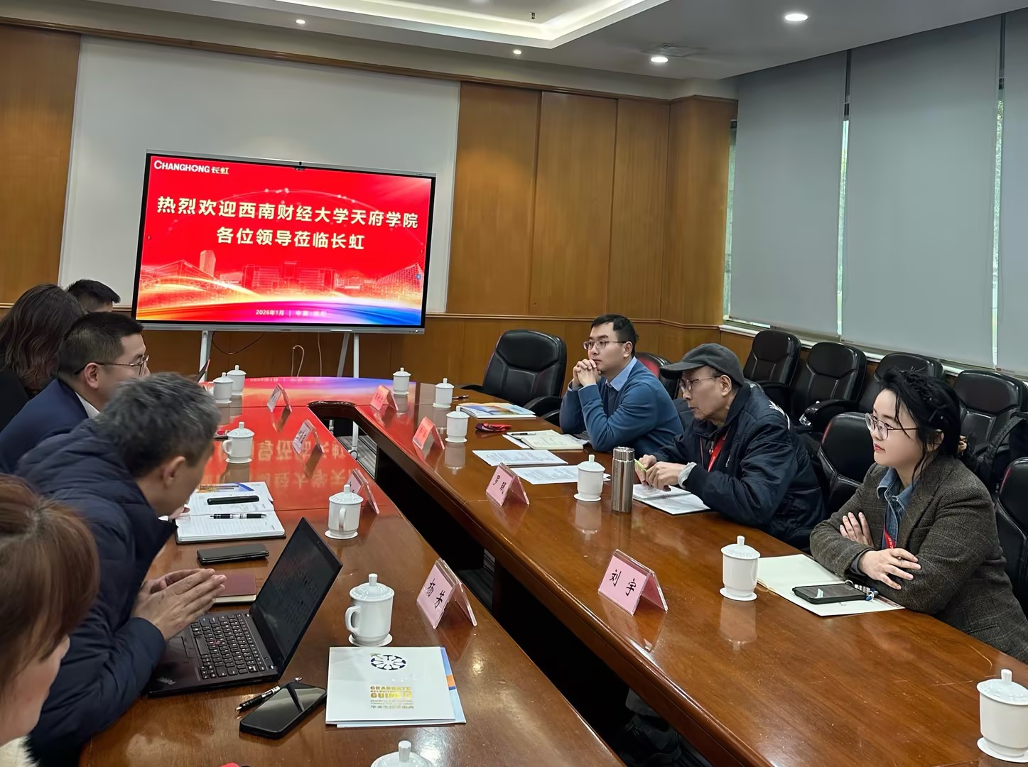1月9日,西南财经大学天府学院现代管理学院院长罗珉率队赴四川长虹电子控股集团有限公司开展交流座谈。团队成员包括学校现代管理学院副院长刘宇、继续教育学院副院...