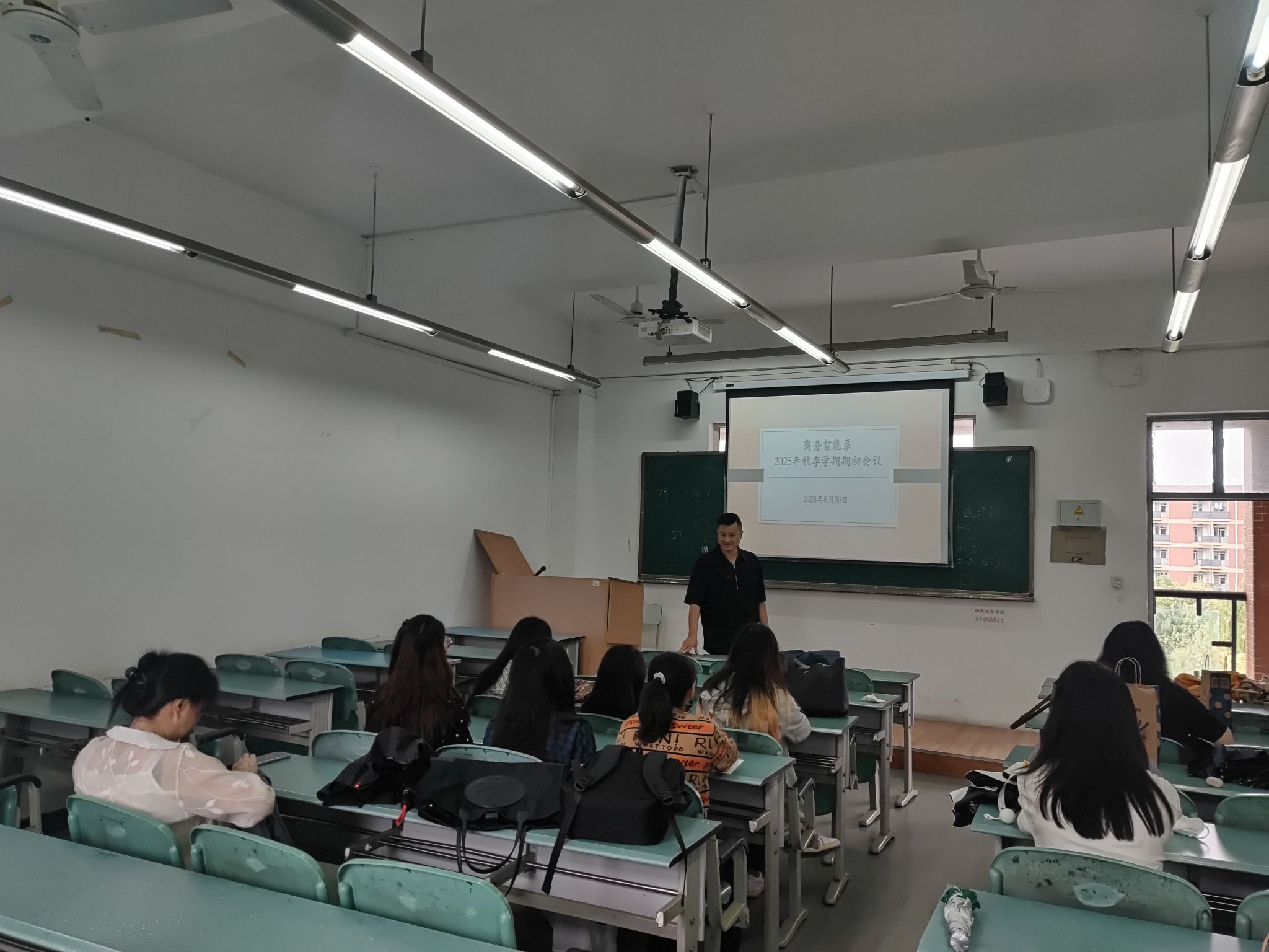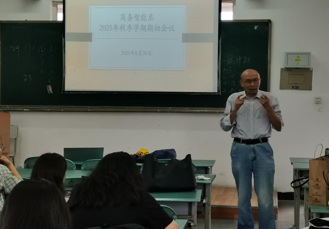 8月30日下午,现代服务管理学院商务智能系在绵阳校区3415教室召开新学期工作部署会,旨在统一教师思想认识,明确新学期的工作目标和关键绩效指标(KPI)。商务智能系全体教师参会,现代服务管理学院院长罗珉教授受邀出席,系主任杜民帅主持会议。