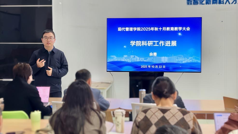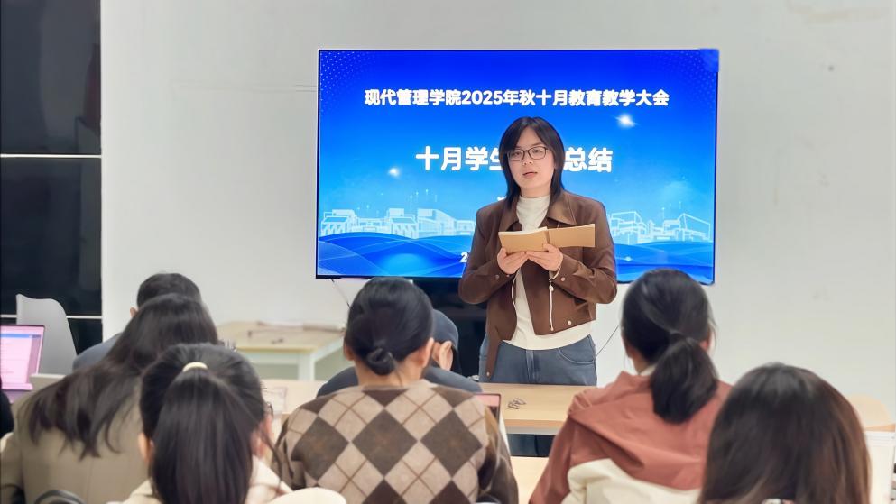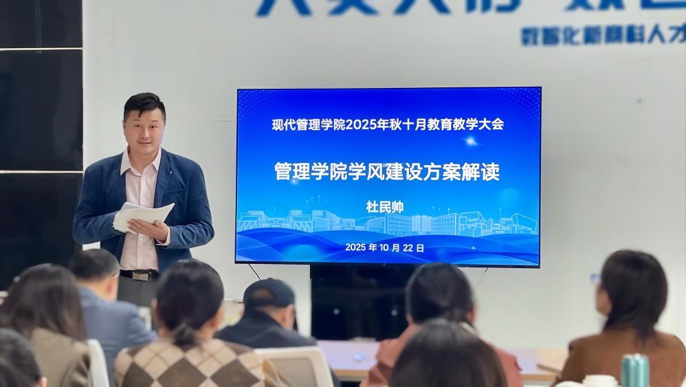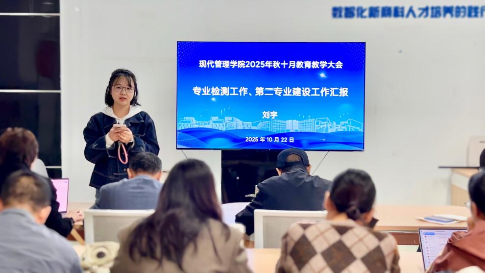 为深入学习贯彻习近平新时代中国特色社会主义思想,全面推进教育教学改革与内涵式发展,现代管理学院于2025年10月22日在B6-1会议室召开全院教育教学工作会议。学院全体教职工参加会议,会议由学院领导班子成员围绕重点议题及责任板块展开汇报与交流。会议由高丹副院长主持。