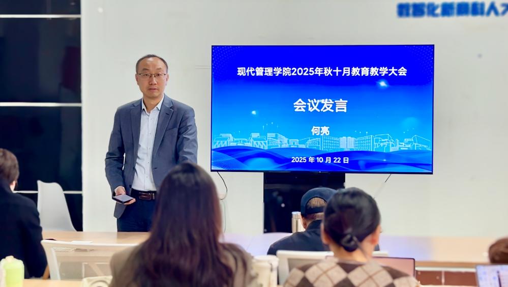 学院执行院长何亮系统回顾了近期学院在教育教学、科研创新与社会服务等方面的整体进展。他指出,学院在课程建设、数字教材开发、教学成果培育等方面稳步推进,尤其在人工智能赋能教学改革方面取得初步成效。