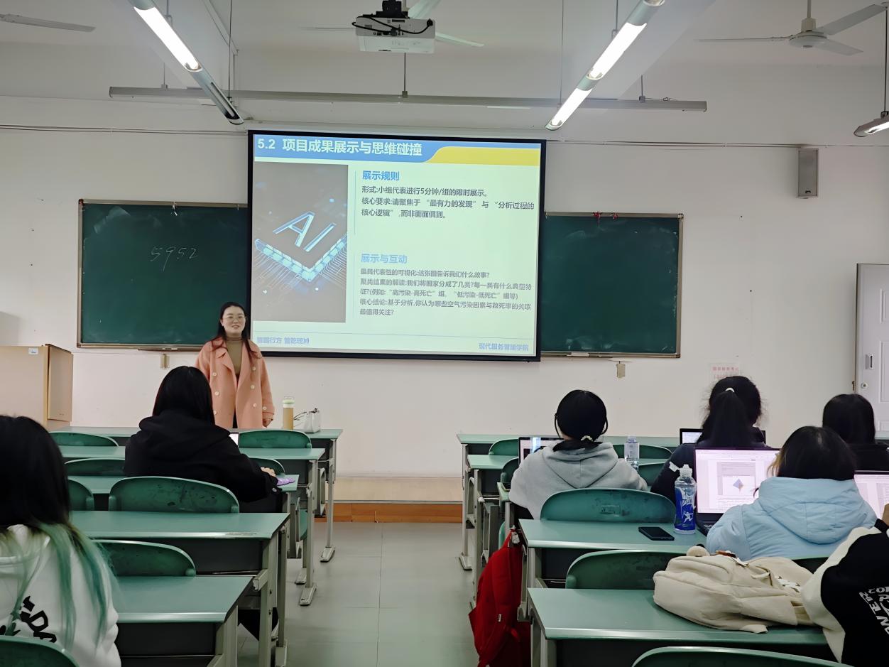 为引导学生将数据挖掘知识融汇贯通,并通过聚类分析项目,赋能其解决真实世界问题的核心能力,11月12日,现代管理学院数智管理AI创新实验班在绵阳校区3412开展了第七十六期讲座——“空气污染致死因素分析(四)”,本次讲座由刘欢老师为同学们讲解。