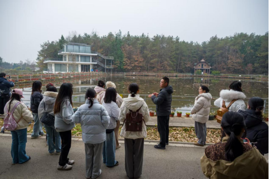活动伊始,农场技术负责人带领师生依次参观了办公区、一号种植园区、生态养殖区、游客接待中心及共享农耕体验区。负责人结合农场实际运营,系统介绍了智慧农业在作物栽培、病虫害防控等方面的应用,并深入阐释了“农业+文旅”“共享种植”等创新业态的发展模式。同学们在生态养殖区近距离观察并体验了动物喂养、数据记录等实践环节;在共享农耕区,大家了解了农场如何通过整合土地资源、对接城市需求,实现农业生产经营与休闲体验的有效融合。