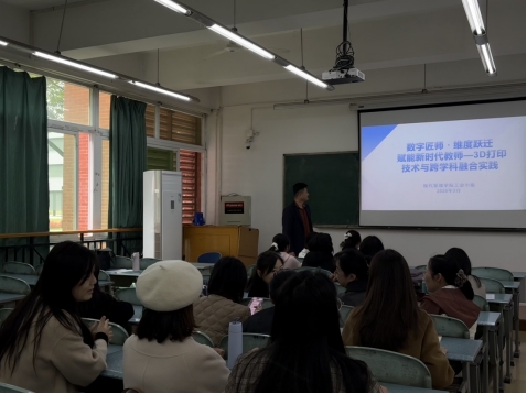 3月18日下午,现代管理学院在1105教室及3D打印创新实训基地成功举办了主题为“智绘三维·匠心育人”的3D打印创新实践活动。本次活动旨在积极响应国家关于“教育数字化”与“新工科建设”的战略号召,致力于提升全院教职工的数字素养与跨学科教学融合能力。学院教职工和部分学生代表走出传统办公室、教室,深入智能制造一线,通过“理论讲解+基地实操+教具创作”的沉浸式模式,亲身体验从“二维图纸”到“三维实体”的造物过程,共同开启了一场关于教育革新的探索之旅。