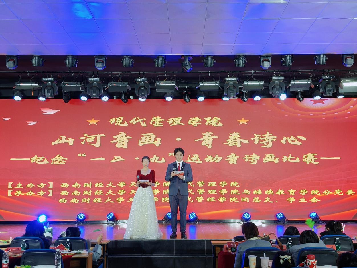 12月8日现代管理学院“山河音画·青春诗心”纪念一二·九运动音诗画比赛在绵阳校区学术报告厅成功举办。现代管理学院与继续教育学院分党委书记倪娅、副书记潘兰及各辅导员老师出席本次活动,与百余名学子共赴这场铭记历史、致敬青春的盛会。
